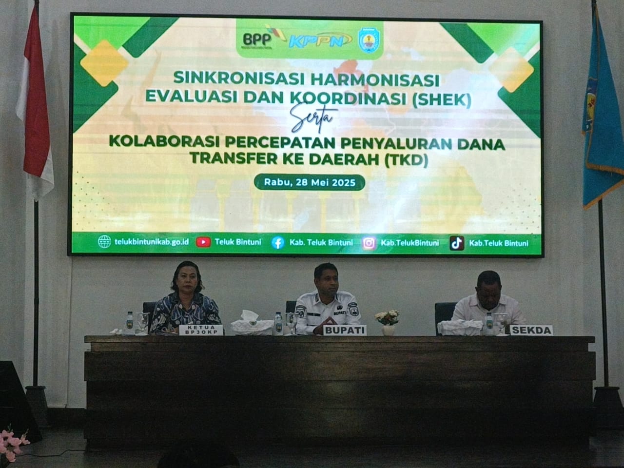 BINTUNI, SuaraTeluk.com – Badan pengarah percepatan pembangunan Otonomi Khusus Papua Republik Indonesia (BP3OKP-RI) gandeng Pemkab Teluk Bintuni laksanakan giat Sinkronisasi, Harmonisasi, Evaluasi, dan Koordinasi (SHEK) untuk mempercepat penyaluran Dana Transfer ke Daerah (TKD). Rabu (28/5/2025).