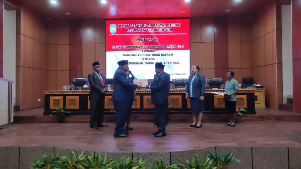 BINTUNI, SuaraTeluk.com – Dewan perwakilan rakyat daerah (DPRD) Teluk Bintuni melaksanakan rapat paripurna dengan agenda membahas Rancangan APBD Perubahan TA 2024 di Aula DPRD Teluk Bintuni, Kamis (19/9/2024) malam