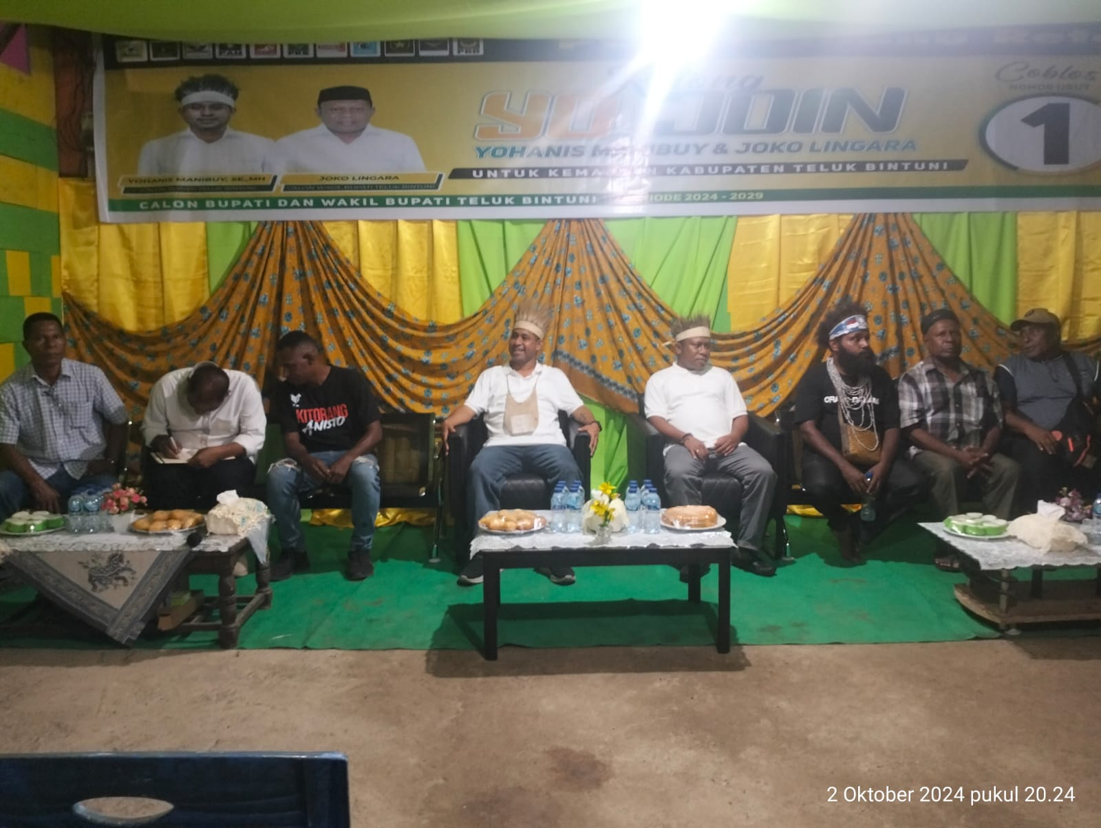 BINTUNI, SuaraTeluk.com – Dukungan terus mengalir untuk pasangan calon Bupati dan Wakil Bupati Teluk Bintuni, Yohanis Manibuy dan Joko Lingara Iribaram yang akan maju dalam kontestasi Pilkada serentak tahun 2024.
