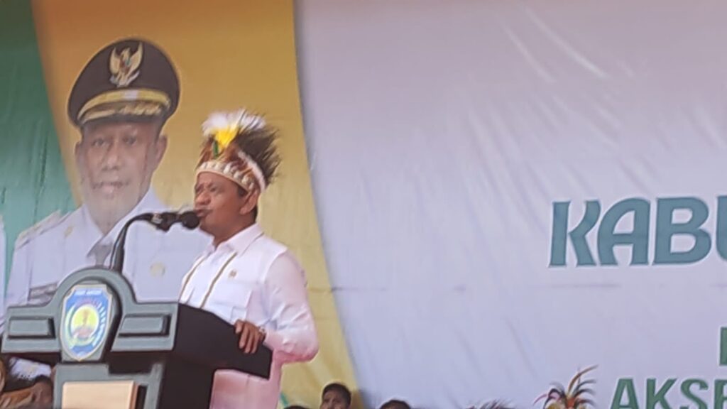 BINTUNI, SuaraTeluk.com – Menteri Energi dan Sumber Daya Mineral (ESDM) Republik Indonesia, Bahlil Lahadalia, menghadiri puncak perayaan Hari Ulang Tahun (HUT) ke-22 Kabupaten Teluk Bintuni yang digelar di Gelanggang Argosigemarai, Distrik Bintuni Timur, pada Rabu (11/6/2025).