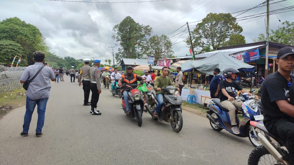 Mereka menggunakan ratusan sepeda motor, puluhan mobil roda empat, truk hingga tronton. Masaa bergerak sejak dari Posko Utama YO JOIN di Kampung Lama hingga di Kantor KPUD di Tisay.