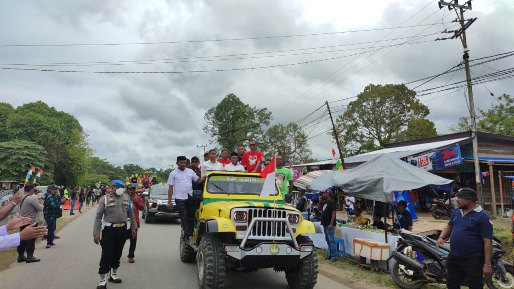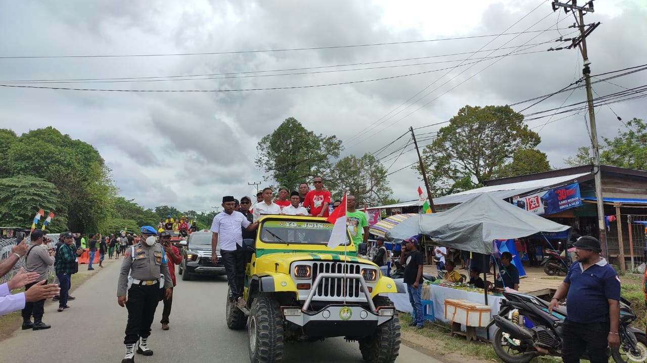 Ribuan pendukung YO JOIN yang tergabung dalam relawan Nol Rupiah ini, memadati sepanjang ruas jalan yang menjadi rute perjalanan YO JOIN menuju KPUD Teluk Bintuni.
