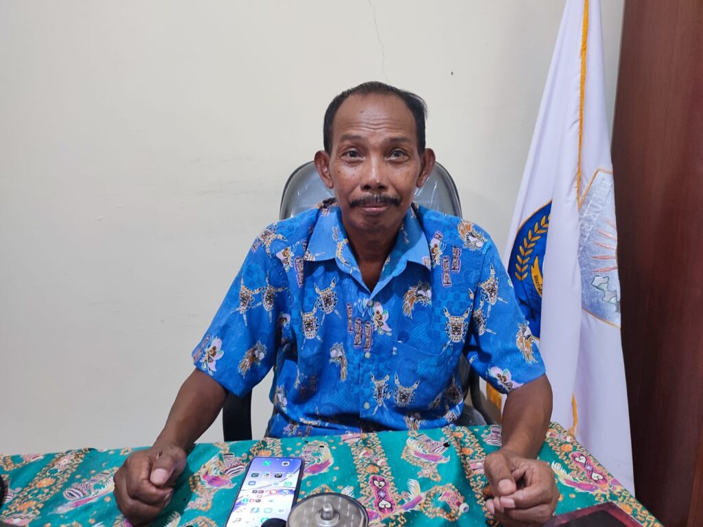 Kepala Kampung Banjar Ausoy SP 4, Distrik Manimeri. Sudirman saat di temui media ini di ruang kerjanya. (Foto/Susi)
