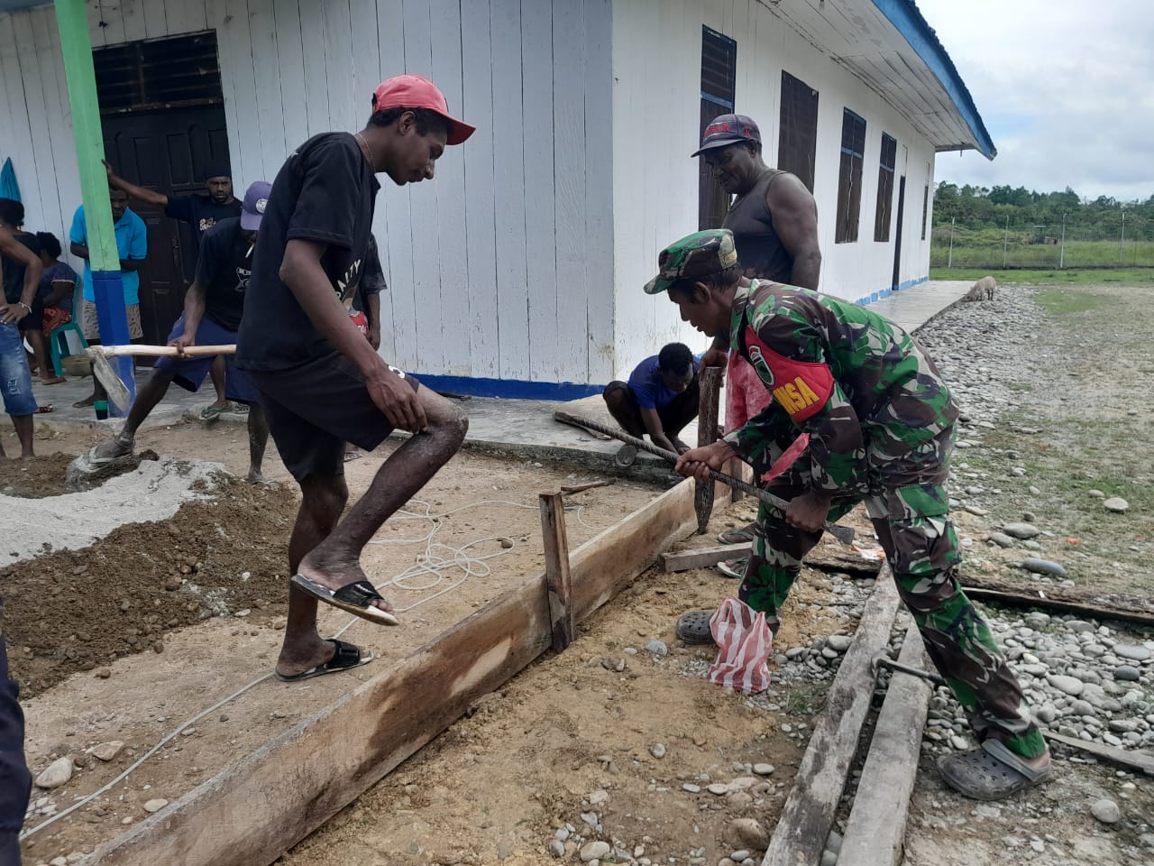 Koramil 1806-03/Merdey Bersama Warga Binaan Bangun Pondasi Gereja
