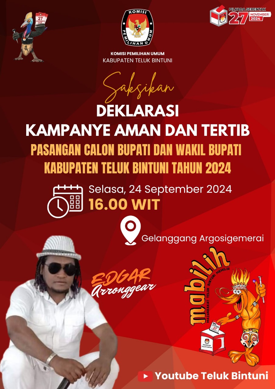 Ketua KPU Teluk Bintuni, Muhammad Makmur Memed Alfajri, menyampaikan Acara deklarasi kampanye ini dilakukan setelah KPU telah menyelesaikan tahapan Rapat Pleno Terbuka terkait pengundian dan pengumuman nomor urut pasangan calon Bupati dan Wakil Bupati.