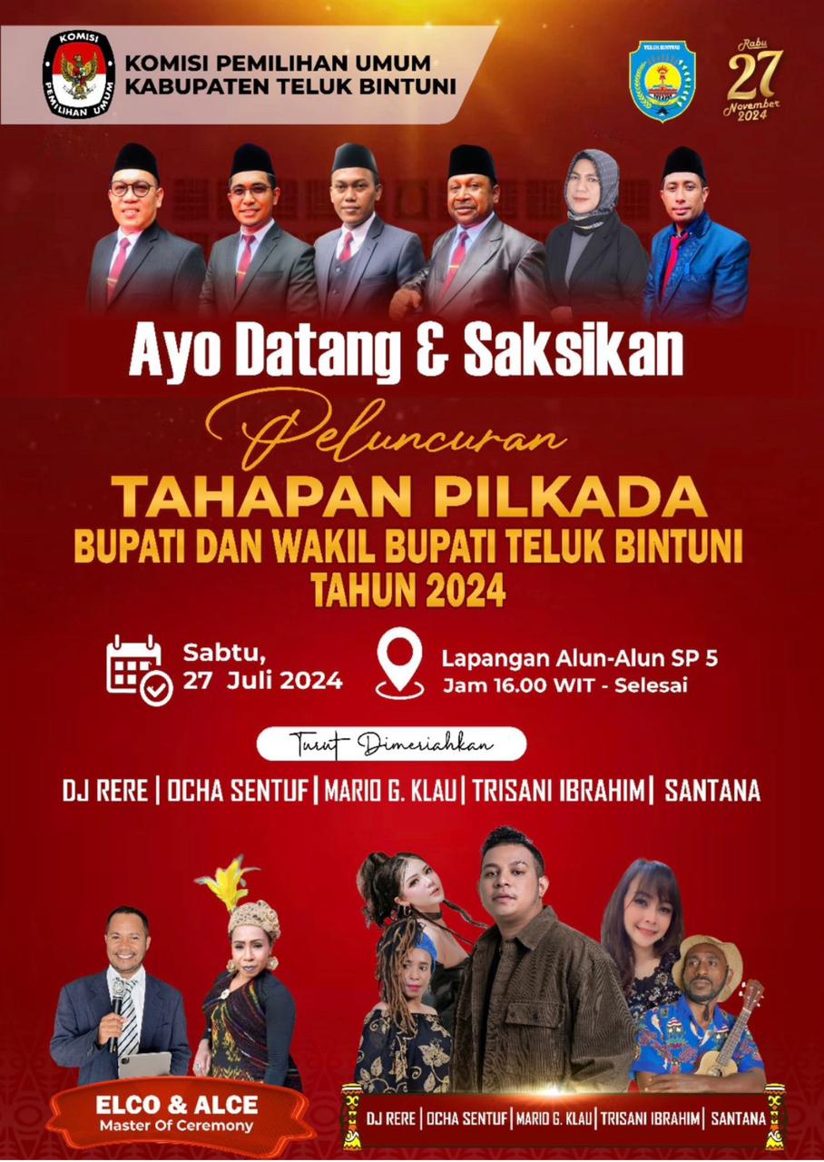Juli 25, 2024 Pada Sabtu 27 Juli 2024, KPU Teluk Bintuni Gelar Peluncuran Tahapan Pemilihan Bupati Dan Wakil Bupati NEWS 0 Post Views: 320