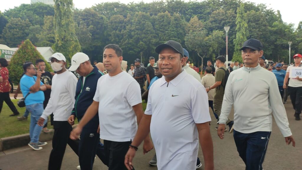 “Kita sudah ada di pelataran Monas sejak jam 7 pagi untuk gladi kotor. Latihan baris berbaris, penghormatan. Semua sudah selesai, tunggu petunjuk selanjutnya.” Ujar Bupati- Wabup,Yohanis Manibuy dan Joko Lingara