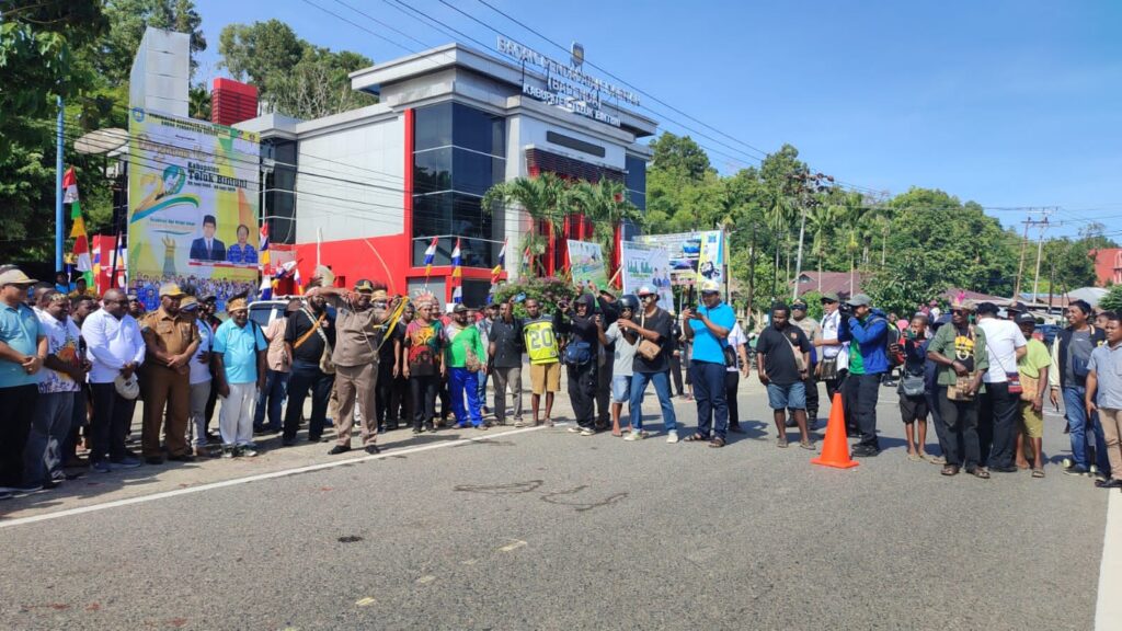 Parade Truk Budaya yang dimeriahkan dengan tarian-tarian dari 7 Suku Asli Kabupaten Teluk Bintuni, mengambik titik start di lepaskan oleh Plt. Sekda Frans N Awak. Dengan