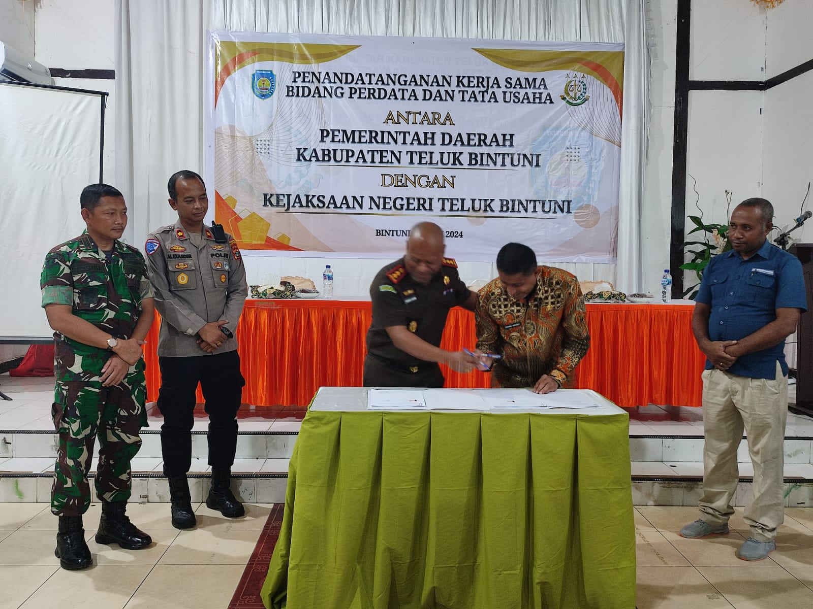 Kepala Kejaksaan Negeri (Kajari) Teluk Bintuni, Yusak E. Ayomi, melaksanakan penandatanganan Nota Kesepahaman (MoU) antara Kejaksaan Negeri Teluk Bintuni bersama Pemerintah Daerah.