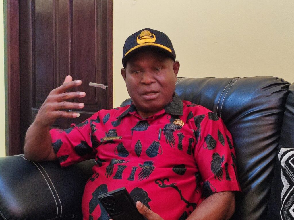 Kepala Badan Kepegawaian, Pendidikan dan Pelatihan Teluk Bintuni Sefnat N Manikrowi saat di wawancarai media ini di ruang kerjanya. (Foto/Susi)