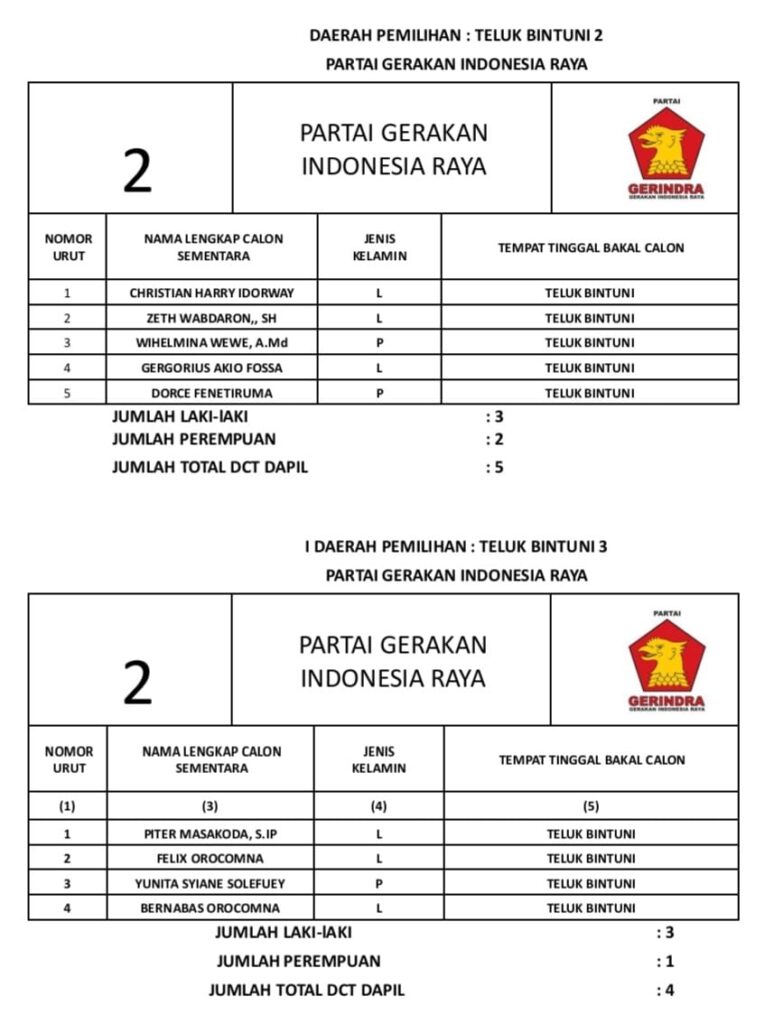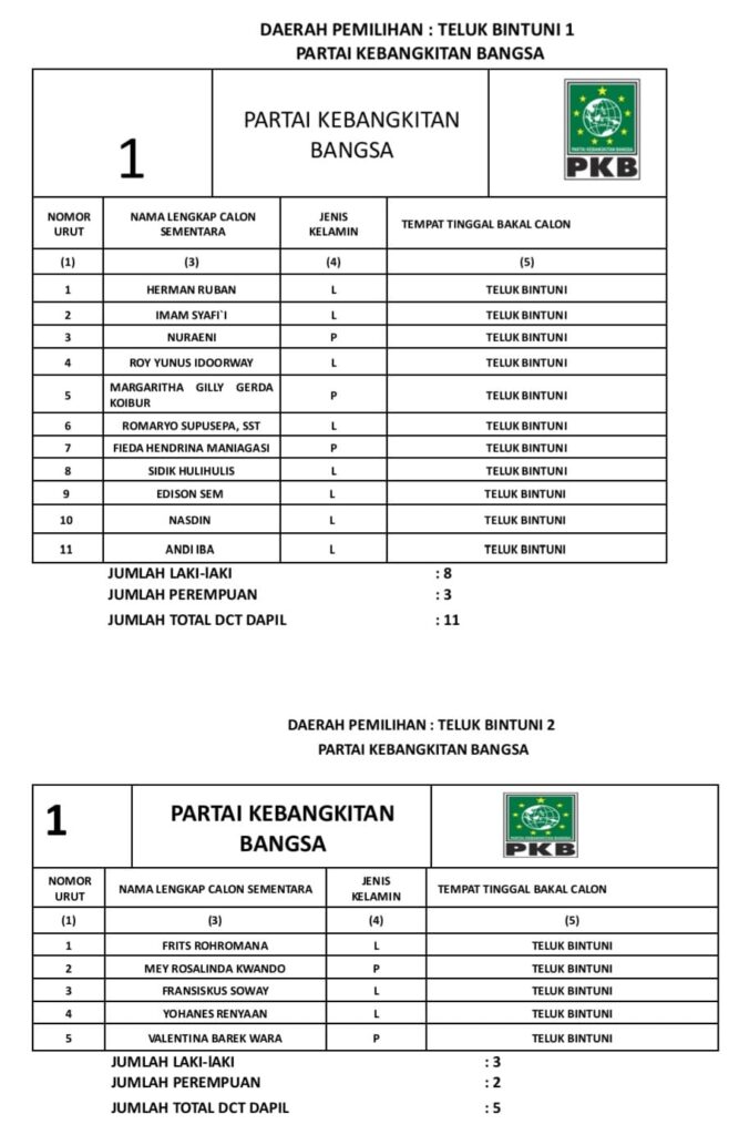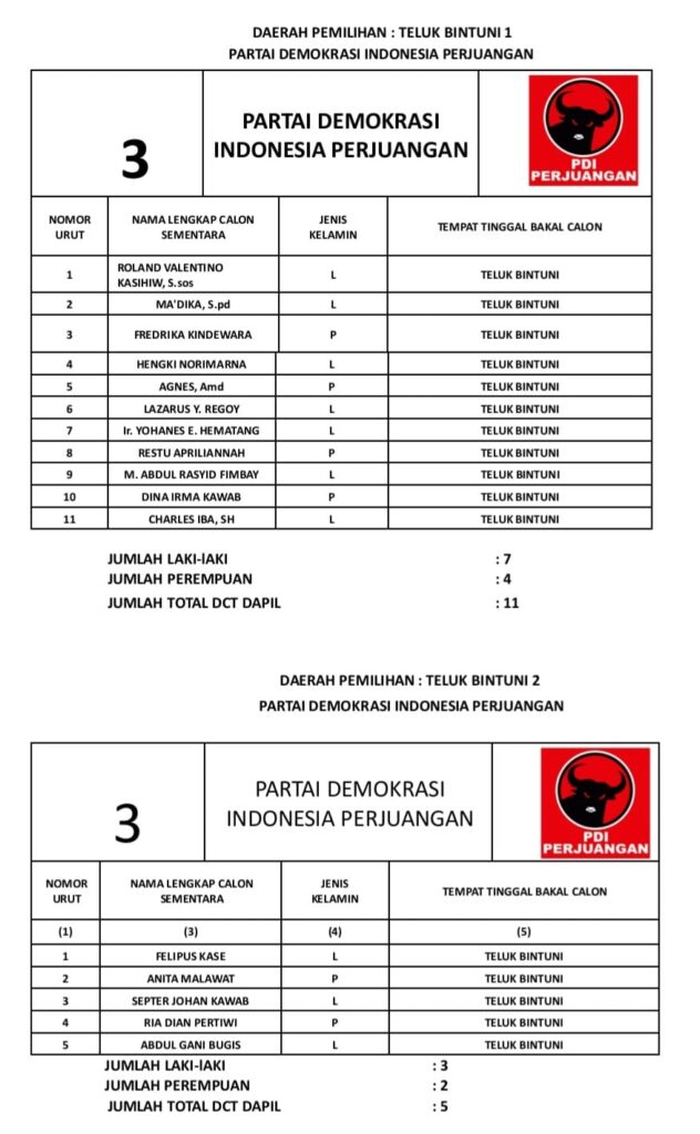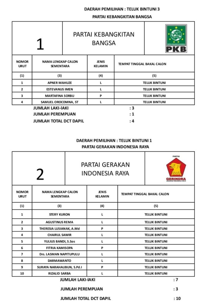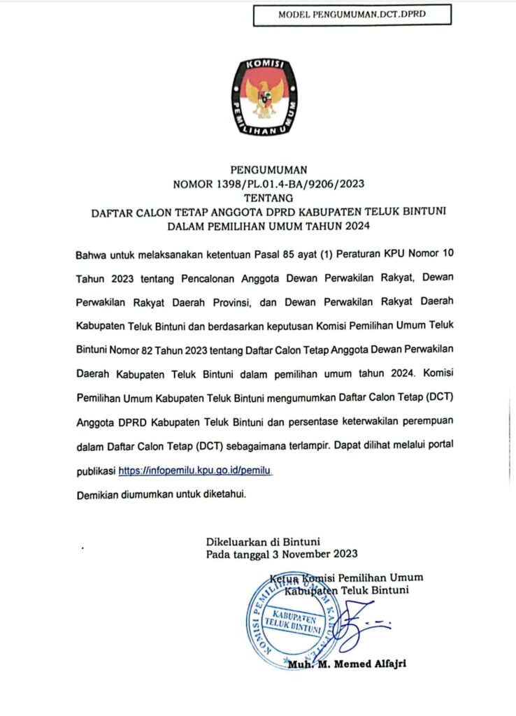 November 4, 2023 PENGUMUMAN DAFTAR CALON TETAP DPRD KABUPATEN TELUK BINTUNI PADA PEMILU TAHUN 2024 PAPUA RAYA 0 Post Views: 833