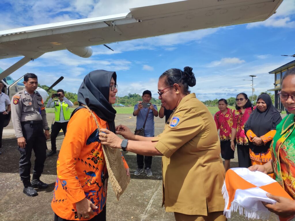 Tiba di bandara Bintuni menggunakan pesawat Susi Air, rombongan Ketua BKOW Ny. Lanny Laisanggi Lakatoni di sambut oleh ibu wakil Bupati Teluk Bintuni, Ny. Nurdiana Amir Lingara di dampingi ketua l Gabungan Organisasi Wanita (GOW). Ny Jacomina Jane Awak serta pengurus GOW Teluk Bintuni.