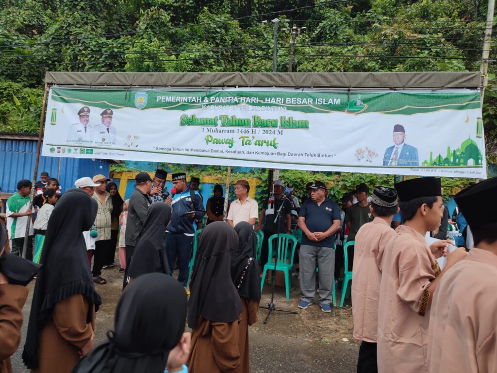 Wakil Bupati Matret Kokop, saat melepas peserta pawai ta’aruf menyampaikan kepada masyarakat lebih khususnya umat muslim yang berada di Kabupaten Teluk, agar dapat mengambil hikmah dari perayaan Tahun Baru Islam ini. Wabup mengatakan bahwa pada momentum menyambut Tahun Baru Islam 1446 Hijria ini jadikan sebagai bahan introspeksi diri.