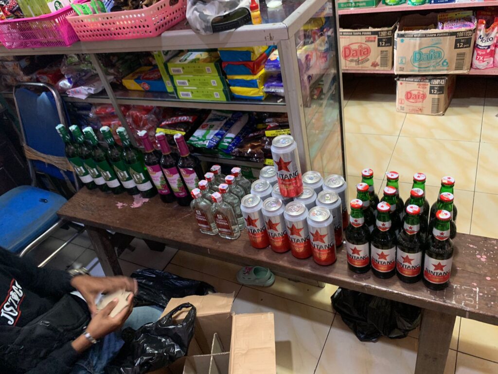 Adapun miras Ilegal yang di sita yakni Bir botol sebanyak 15 botol, Bir kaleng hitam sebanyak 9 kaleng, Vodka sebanyak 12 botol, Anggur hijau 5 botol, Anggur merah 3 botol, bir bintang kaleng jumbo 13 kaleng dan bir bintang botol 12 botol.