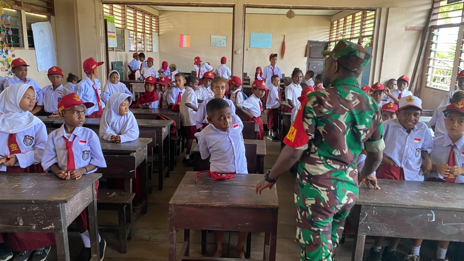 BINTUNI,suarateluk.com – Anggota koramil 1806-05/Tomu. Serda petrus Auparay dan Serda falentino ulo melaksanakan Wasbang di sekolah dasar (SD) Inpres kampung sebyar rejosari, Distrik Tomu, Jumat (19/1/2024).