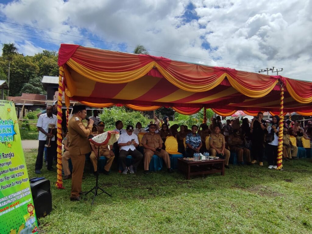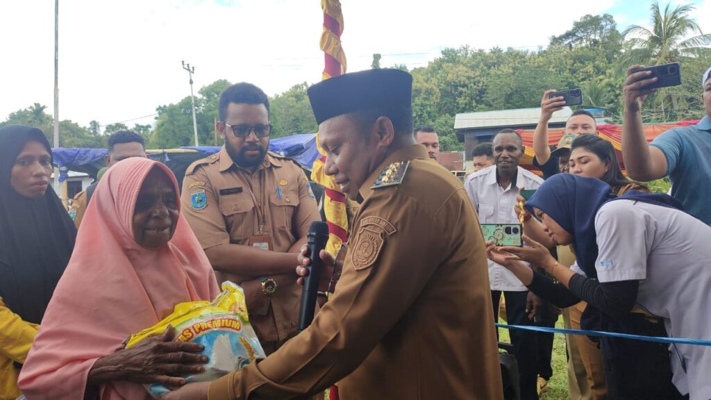 BINTUNI, SuaraTeluk.com – Pemerintah Kabupaten Teluk Bintuni melalui Dinas Ketahanan Pangan melakukan gerakan pangan murah guna menjaga Stabilitas dan harga pangan menjelang hari raya Idul Fitri 1446 Hijriah Tahun 2025 Masehi, pasar murah ini berlangsung di lapangan Tahiti, Distrik Bintuni, pada Senin (24/3/2025). Pagi