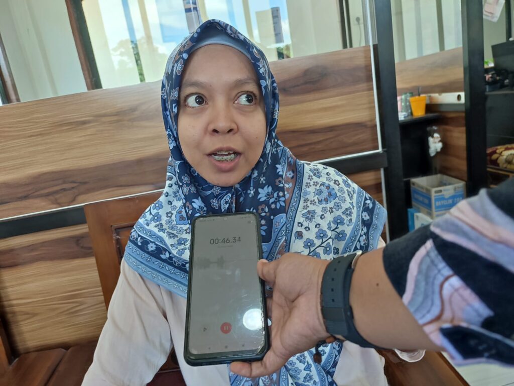 Petugas SPBU bagian Administrasi, Ira saat di wawancara oleh media ini diruang kerjanya pada Rabu (11/3/2026). (Foto/Susi)