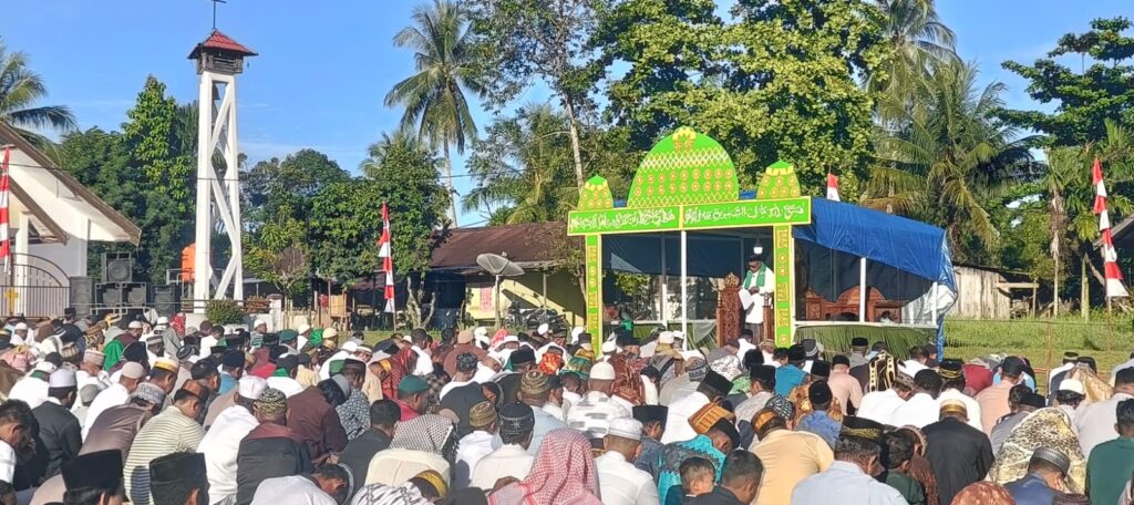 BINTUNI, SuaraTeluk.com – Wakil Bupati Teluk Bintuni Joko Lingara bersama Istri Nudiana Lingara shalat Idul Adha 1446 H/2025 M dilapangan Trikora Distrik Babo, Jumaat (6/6/2025).
